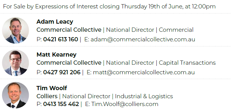 Colliers National Director, Industrial & Logistics, Tim Woolf, in conjunction with Adam Leacy and Matt Kearney of Commercial Collective, has the listing.