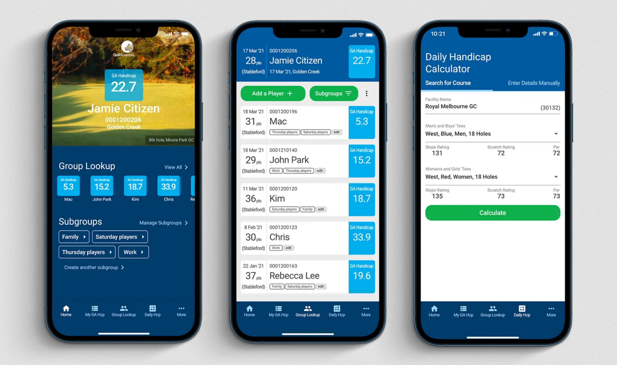 In addition to accessing their own handicap record and the daily handicap calculator, users can view and share via text message, WhatsApp, Facebook and other platforms the handicaps and scores of other golfers.