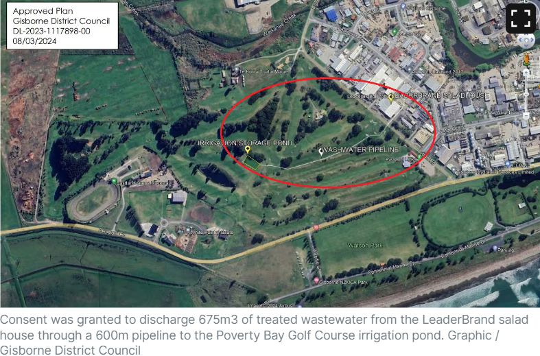 LeaderBrand has teed up a novel method to help Poverty Bay Golf Club irrigate its course by recycling water used to wash salad greens.