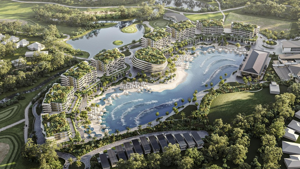 The proposed integrated resort will incorporate a range of mixed-use facilities, including a hotel with some private residences, offices, education, a health, sports and recreation precinct, as well as a collective food and beverage experience that comprises a large casual dining experience with both indoor and outdoor seating overlooking the wave pool.