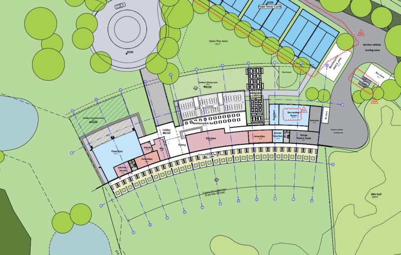 The proposed facility at David Low Way, Diddillibah, would include a golf driving range, mini-golf course and padel tennis and pickleball courts, plus a bar/restaurant, escape room and function space.