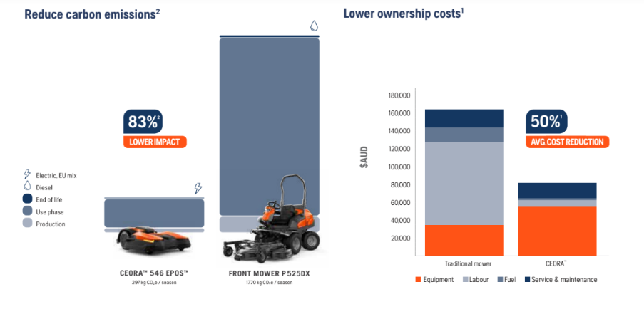 For example, a robotic mower can cut emissions by 83%, but also due to the autonomous nature of the technology, can run independently once set up and free up time for employees to focus on more value adding work.