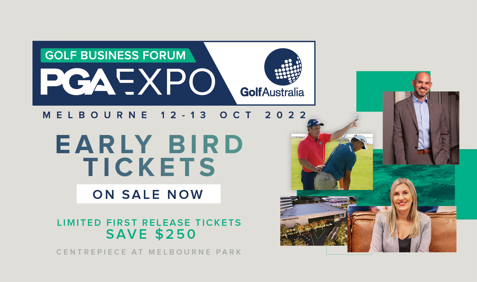 Tickets are now on sale for Golf Business Forum \ PGA Expo 2022, to be held at CENTREPIECE at Melbourne Park in October, a landmark event for the sport and Australia’s most influential golf business event.