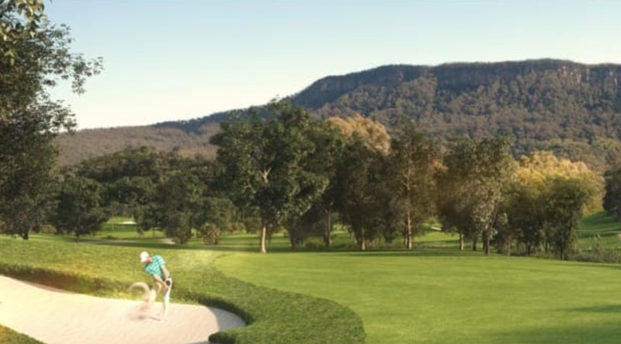 The 18-hole golf course, part of a 562-hectare site, already has DA approval. Three holes are completed and two are currently under construction. A recent DA consent granted approval to a revised layout concerning four holes and a 99-lot land subdivision. The remaining nine holes are earmarked in the future stages of the development.