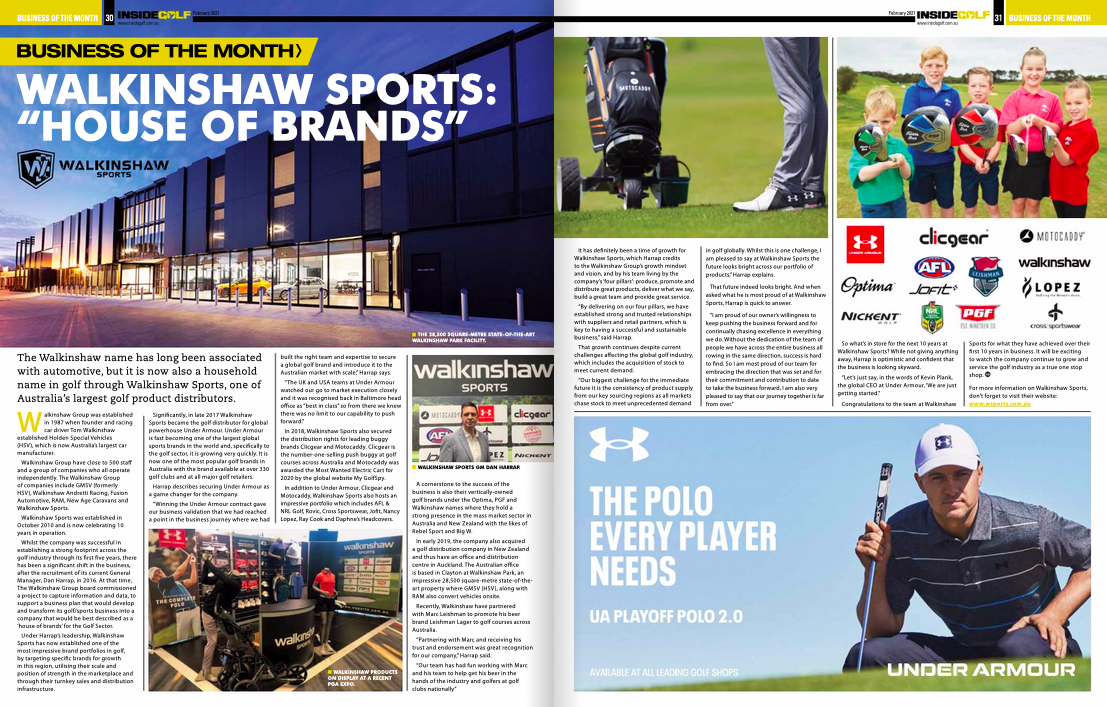 Walkinshaw Sports was named Business of the Month in Inside Golf’s February edition.